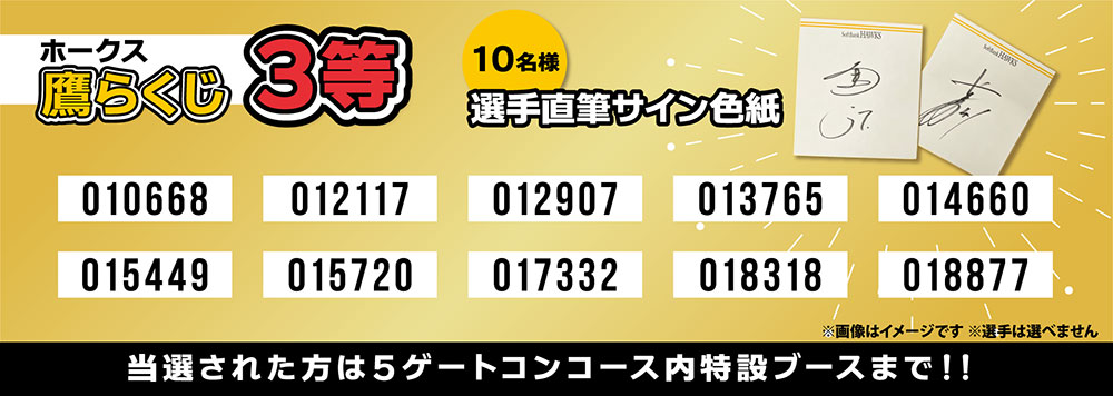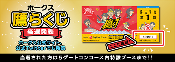 3月7日(日)阪神タイガース戦で入場者に配布した「鷹らくじ」の当選発表を行います!