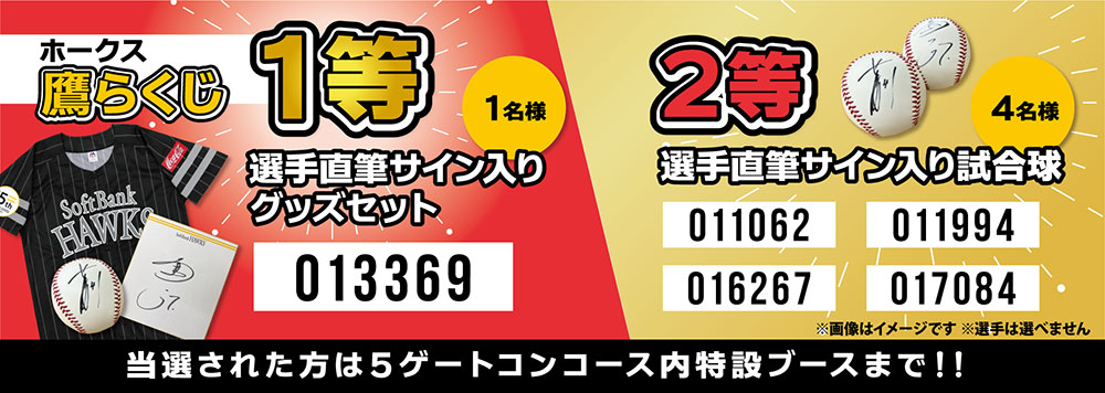 PayPayドームのビジョンで見逃した方も、こちらをご確認のうえ、当選者の方は5ゲートコンコース内22通路前賞品引換所までお越しください。