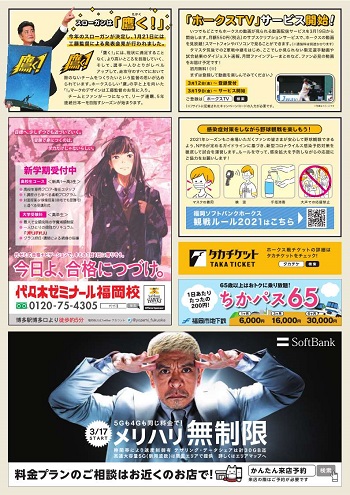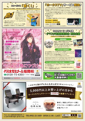 ※一部配布されない地域があります。また、『ホークスだより』の郵送対応は行っておりませんので、あらかじめご了承ください。