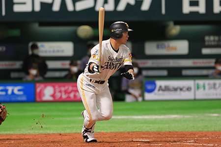 試合は6対8で迎えた九回、上林選手のタイムリーと川瀬晃選手の内野ゴロの間に挙げた得点で同点に追いついた。