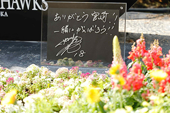 2004 年から毎年、またコロナ禍の2021年もホークス春季キャンプを受け入れていただいた宮崎県および宮崎市へ感謝の気持ちを表すとともに、キャンプ地・宮崎とホークスファンの絆を深める取組みの一環として、宮崎の花でPayPay ドームを彩る「HAWKS宮崎フラワーガーデン」が完成しました。