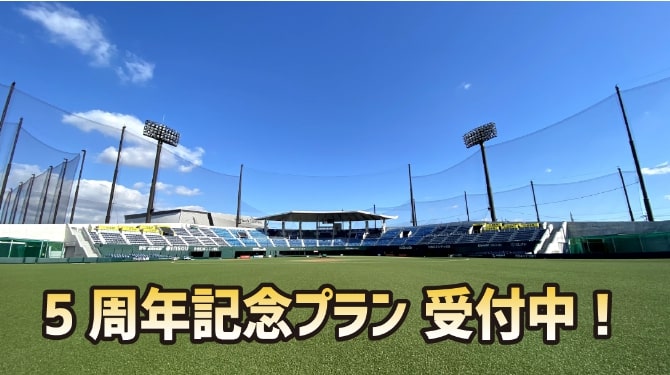 HAWKSベースボールパーク筑後は、開業5周年!5周年を記念して、タマスタ筑後で草野球ができるプランが新登場♪きれいな人工芝・見晴らしの良いベンチでの試合は格別です。プロ野球選手になりたい!プロ野球選手が夢だった!そんなあなたの「夢」をホークス選手がいつも試合しているグラウンドに立って叶えましょう♪只今、受付中!お見逃しなく。