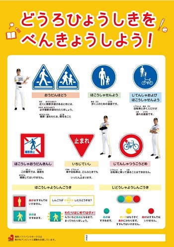 裏面は、道路標識や信号機の見方を学習できる内容になっています。