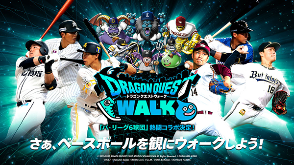 パシフィック・リーグ6球団(北海道日本ハムファイターズ、東北楽天ゴールデンイーグルス、埼玉西武ライオンズ、千葉ロッテマリーンズ、オリックス・バファローズ、福岡ソフトバンクホークス)とパシフィックリーグマーケティング株式会社(本社:東京都中央区、代表取締役CEO:根岸 友喜)は、株式会社スクウェア・エニックス(本社:東京都新宿区、代表取締役社長:松田 洋祐)が配信するスマートフォン向け位置情報RPG「ドラゴンクエストウォーク」とのコラボレーションが決定したことをご案内いたします。