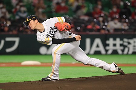 先発した高橋礼投手は初回に3連打を浴びて1点を失うも、味方守備の好プレーや甲斐拓也選手の“甲斐キャノン”で盗塁阻止などもあり最少失点で乗り切った。その後3イニングは無失点で、4回4安打1失点にまとめた。