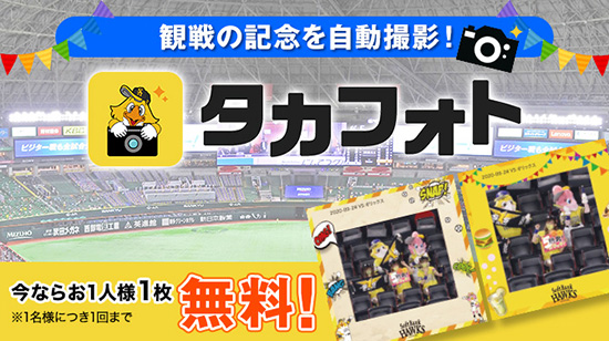 試合観戦中のお客様を自動で撮影し、応援に熱中する最高の瞬間をメモリアルフォト(記念写真)として提供するプロスポーツ界初※となるサービスとして昨年10月にコカ・コーラシート内で無料トライアルを実施していた「タカフォト」がいよいよ2021年レギュラーシーズンより、正式サービススタートとなります。