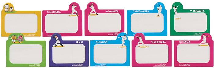 | 種類 | 松田選手・今宮選手・中村晃選手・柳田選手・甲斐選手・周東選手・栗原選手・千賀投手・ハリー/ハニー・ふうさん/こふうさん |