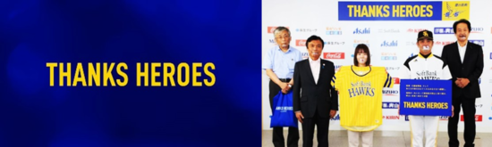 また、「感謝のブルーと決意のイエロー」でデザインされた鷹の祭典ユニフォーム(レプリカ)17万着を福岡県、および福岡県医師会のご協力のもと、県内の医療従事者の皆さまへ贈呈させて頂きました。