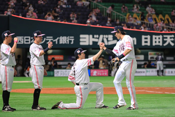 (選手が着用したユニフォームやキャップ、ヘルメットなどは、後日チャリティオークションに出品予定。)