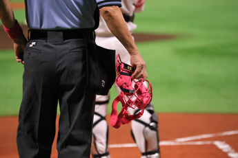 ●選手・審判がピンクリボンリストバンド着用・審判マスクなどもピンクに。