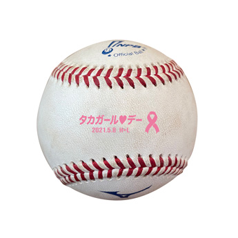 2020年度「タカガール♡デー」において、乳がんの撲滅、検診の早期受診を啓発・推進する「ピンクリボン運動」の取組を実施し、当日試合で監督・コーチ・選手が着用した「ピンクリボンユニフォーム」「ピンクリボンキャップ」「ピンクリボンヘルメット」を出品した「ピンクリボンチャリティオークション」を行いました。本活動の収益金は、認定NPO法人ハッピーマンマを通じて、乳がん早期発見啓発活動、乳がん患者さんへのサポートに対して寄付させていただくことが決まりましたので、ご報告いたします。