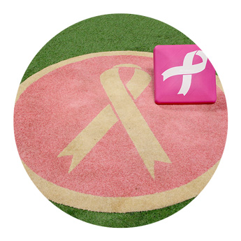 ●塁ベース(一塁、二塁、三塁)、ネクストバッターズサークルを「ピンクリボン」デザインに変更