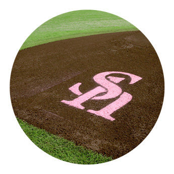 ●ホークスビジョン、マウンド後方の「Sh」マークなどをピンク色のデザインに変更