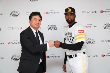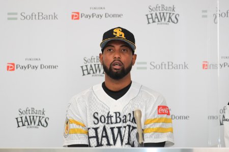 4月14日(水)、アンディ・ロドリゲス投手(背番号140)の入団会見がPayPayドーム内のプレスカンファレンスルームから、オンライン方式で行われました。