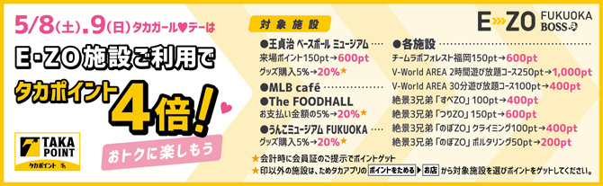 タカガール♡デーの2日間、BOSS E・ZO FUKUOKAでのご飲食や施設のご利用で付与されるタカポイントが、通常の4倍になります!