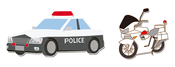 パトカー(レプリカ)や白バイ(レプリカ)等の展示をいたします。各車両の近くで写真撮影をしていただけます。