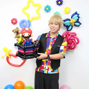 | ブライダルプロデューサーの経験を活かし、ブライダル専門のテーブルマジシャンとしてデビュー。現在は、マジックバーの経営者でもあります。 非常にテクニックが要求されるクロースアップマジックから大規模なイリュージョンマジックまで幅広くこなします。 | 九州・福岡を拠点にするバルーンパフォーマー。その実力は日本トップクラス! 高校時代にやっていたジャグリングをきっかけに、高校卒業後バルーンアートを独学で学び、わずか2年でバルーンアートの全国大会で準優勝を果たしプロに転向!その後も数々の大会で輝かしい実績を残しながら、全国発信のパフォーマーとして活動中! |