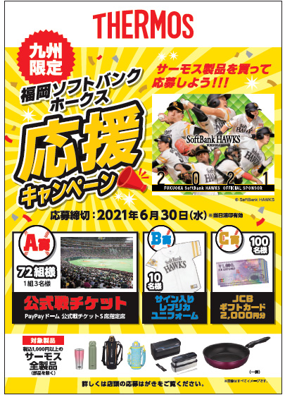 税込1,000円以上のサーモス製品を購入して、観戦チケットやホークス選手サイングッズをゲットしよう!