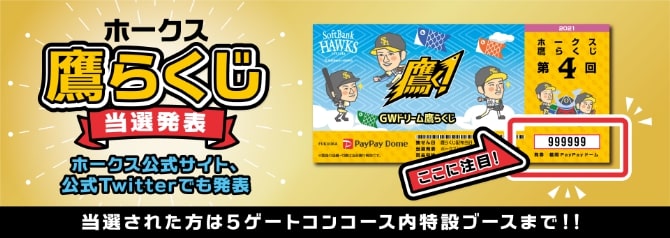 5月5日(水・祝)東北楽天ゴールデンイーグルス戦入場者全員配布の「GWドリーム鷹らくじ」の当選番号発表!