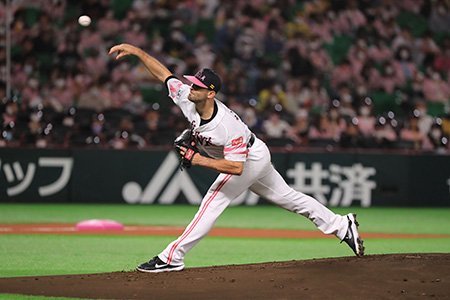 22日(土)の初戦の先発はマルティネス投手です。今季成績は3試合登板で2勝1敗、防御率2.00です。バファローズ戦は1日(土)の京セラドームでの試合で先発して、6回5安打無失点と好投して勝利投手になっています。