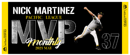 マルティネス投手が5月度「大樹生命月間MVP」投手部門に選出されました。これを記念して、マルティネス投手月間MVP受賞記念グッズを販売します!