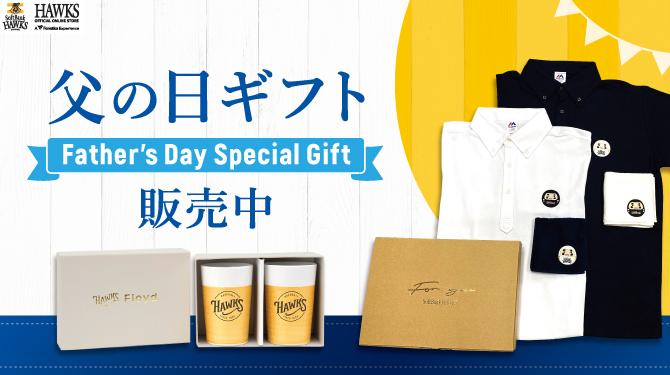 6月20日(日)父の日の贈り物のご準備はお済みですか?HAWKS公式オンラインストアでは、ホークスファンのお父さんに贈りたい、だるまをモチーフにしたギフトセットをご用意しました。また、さりげないHAWKSのロゴがワンポイントがはいったTシャツとポロシャツも新登場です。