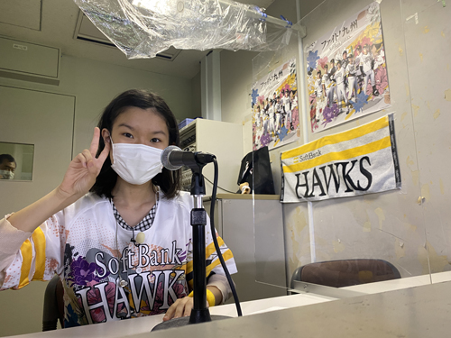 選手へ応援の気持ちを届けたいという純粋な想いをもって応募してくれた梨沙さん。家族ぐるみのホークスファンで、小学5年生のころに応援席で観戦したことをきっかけに野球観戦の魅力にはまり、多い時には年に10回以上も足を運んで選手へ声援を送っていたといいます。本番当日ドームに到着すると、大ファンである高橋礼投手のサイン入りファイト!九州ユニフォームをサプライズでプレゼント!勇気をもらって、会場となるアナウンスブースへと向かいます。