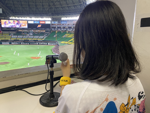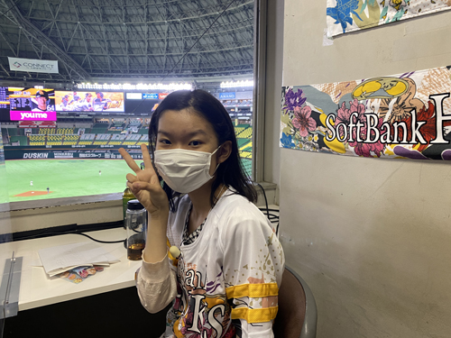 ウグイス嬢になって選手へ応援する気持ちを届けたいという念願をかなえることができた梨沙さん。「選手たちの役に立つ仕事をしたい」という思いから将来はウグイス嬢になりたいという夢を中学1年生の頃から持ち続けているそう。「今までは遠い存在でなれるわけないと思っていたけど、たくさん練習した成果を本番でも出せて、今回の経験は自信になりました!」と目を輝かせていました。