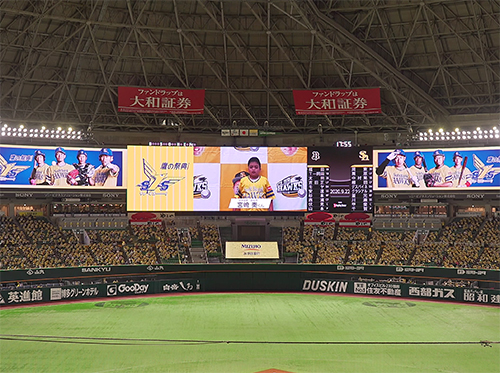 試合前の選手たちへエールを送ろう!あなたの応援メッセージ動画を、試合前にホークスビジョンで放映!当選者には当日のスタメン選手の直筆サインボールもプレゼントします♪