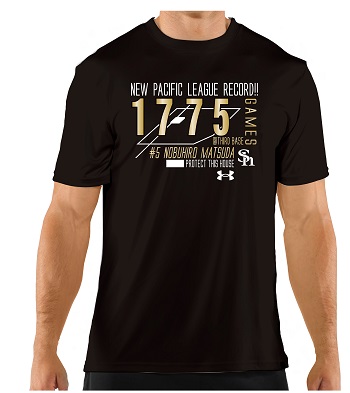 6月10日(木)にパ・リーグ三塁手最多出場記録を達成した、松田宣浩選手の記録Tシャツに新デザインが登場!!