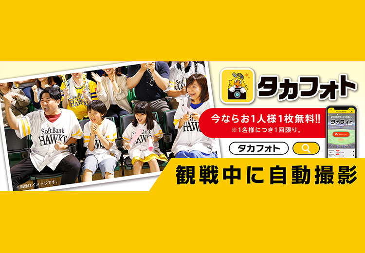 観戦体験の自動撮影アプリ「タカフォト」では、鷹の祭典限定写真フレームがご利用いただけます。今ならお1人様1枚無料キャンペーン中!