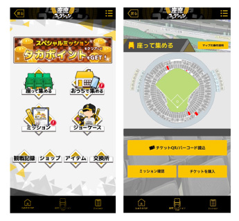 観戦チケットを読み込んだり、おうちでアプリにアクセスしたりすることで、PayPayドーム内の座席を集めて指定されたミッションをクリアしていくコンテンツです。