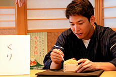 | 提供内容 | 中身:モンブラン ・羽二重餅 ・大名ソフト ・台湾カステラ 枡:栗原選手が書いた「くり」の焼き印入り |