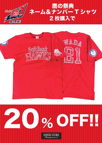 鷹祭ネーム&ナンバーTシャツ2枚購入で20%OFF!