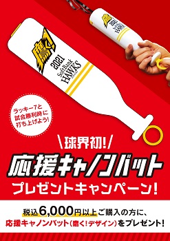 | 対象商品 | 応援キャノンバット(ホーム・鷹の祭典・ファイト!九州) |