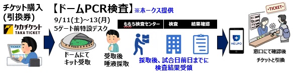 PCR検査を受検できる方:9月14日(火)~9月16日(木)vs千葉ロッテ戦の引換券購入者のうち観戦当日までに「新型コロナウイルスワクチン接種2回を完了」していない、かつPCR検査(無料)をご希望の方。