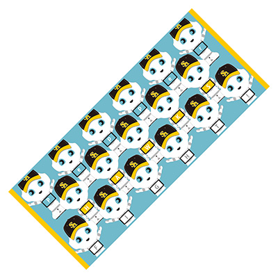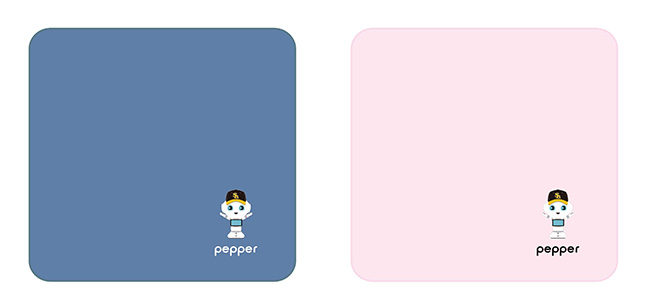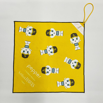 球場でのPepper応援団イベントを想起させるかわいいデザインのフェイスタオルです。よくみるとPepperのタブレットの文字が「FIGHT!」に!