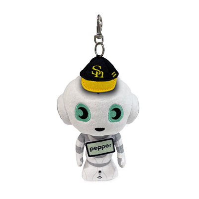ロボットPepperの約1/7サイズのホークスキャップを被った仕様がかわいいマスコットキーチェーン!