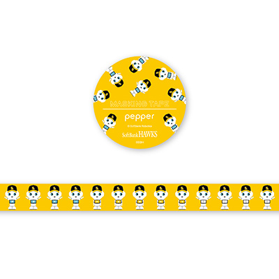 ホークスキャップを被った応援スタイルのPepperの連続柄がかわいいマスキングテープです。