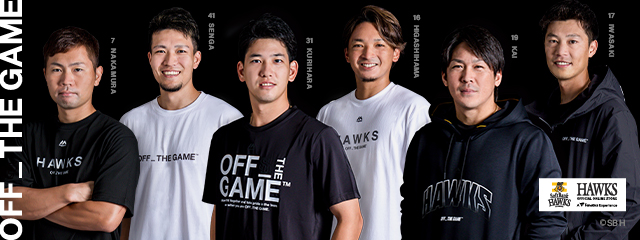 OFF_THE GAMEの全10アイテムより、HAWKSロゴが⼊ったオリジナルデザインのアイテムを展開。チーム関係なく着⽤されたい⽅向けには、「MAJESTIC(マジェスティック)」のロゴが⼊った『OFF_THE GAME』ブランドを展開しています。