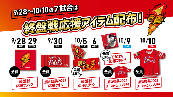 福岡ソフトバンクホークスは、ペナントレース終盤戦を盛り上げる様々な企画を実施します。
