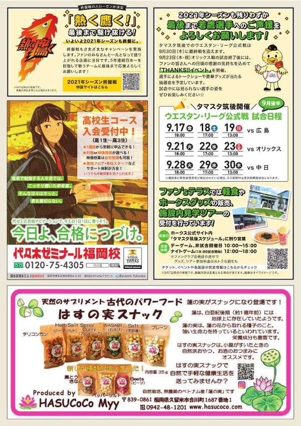 ※一部配布されない地域があります。また、『ホークスだより』の郵送対応は行っておりませんので、あらかじめご了承ください。
