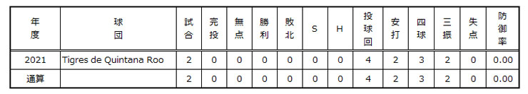 | 球歴 | Tigres de Quintana Roo(2021)※メキシカンリーグ |