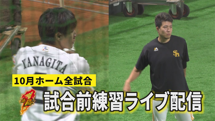 ホークスTVでは、10月にPayPayドームで開催される全6試合の試合前練習の様子をライブ配信!試合に備える選手たちの生の姿をお届けします。配信中はチャット機能も活用して、終盤戦を戦う選手たちにエールを送ろう!
