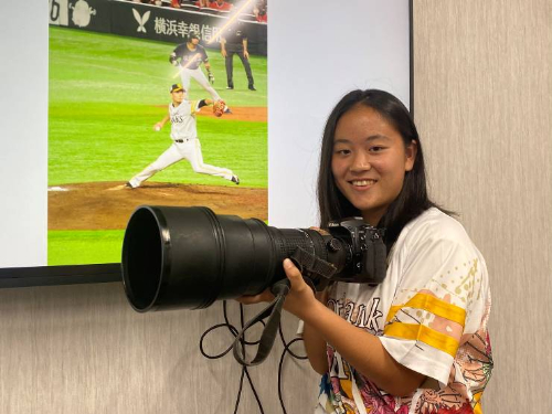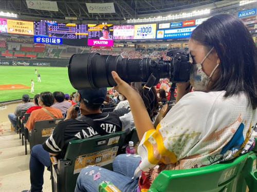 昨年周東選手の活躍を見てホークスファンになったという李音さん。今年になって大のカメラ好きのおじいちゃんからカメラを借りてホークス選手の写真を撮るようになったそうです。普段はタマスタ筑後で撮影することが多く、今回は初めてPayPayドームで撮影にチャレンジ。どんな写真を撮れるのか、楽しみです!