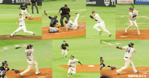 「プレーに素早く対応するために設定を変えて、ピント調整とシャッターを切るのを別のボタンでできるようにしよう。」「片目でレンズをのぞきながら、もう片方でグラウンド全体の流れを見ておくとフレームを合わせやすいよ」。野球のプレーを上手く切り取るには、状況を読みながら、素早くフレームに捉えてシャッターを切る瞬発力が求められます。