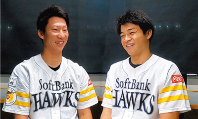 ホークスOB江尻慎太郎さんに会員の皆さんから寄せられた質問を選手に聞いてもらいました。第3回目は真砂勇介選手と谷川原健太選手が登場。柳田選手を尊敬する二人に、直球質問しちゃいます!