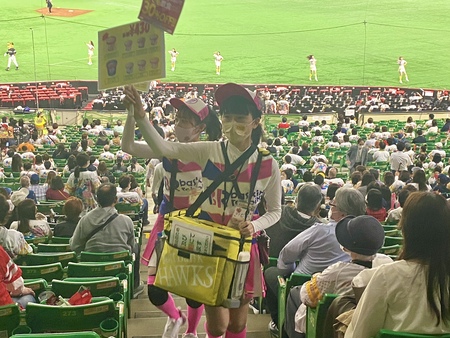 「応援に行ったときいつも笑顔で接客をしている姿を見て憧れたので、売り子をやってみたいです。みんなを笑顔にして、ホークスを盛り上げたいです!」