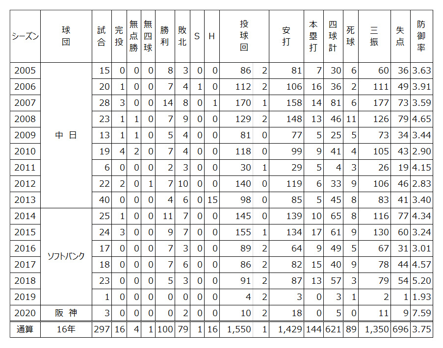 | 経歴 | 福岡県立八幡高等学校~北九州市立大 中日ドラゴンズ~福岡ソフトバンクホークス~阪神タイガース |