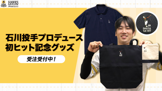 今シーズン、初勝利および初本塁打を達成した、NEW HERO 6選手のグッズが新登場!番外編として、6月4日(金)阪神タイガーズ戦で初ヒットを達成した石川投手の記念グッズも同時販売します。石川投手ご本人プロデュースでバッティングシーンをミニ刺繍で表現した普段使いしやすいデザインです♪